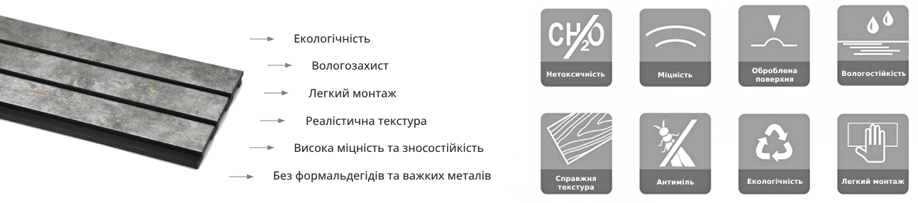 - Низька вартість обслуговування, відсутність фарбування та клею