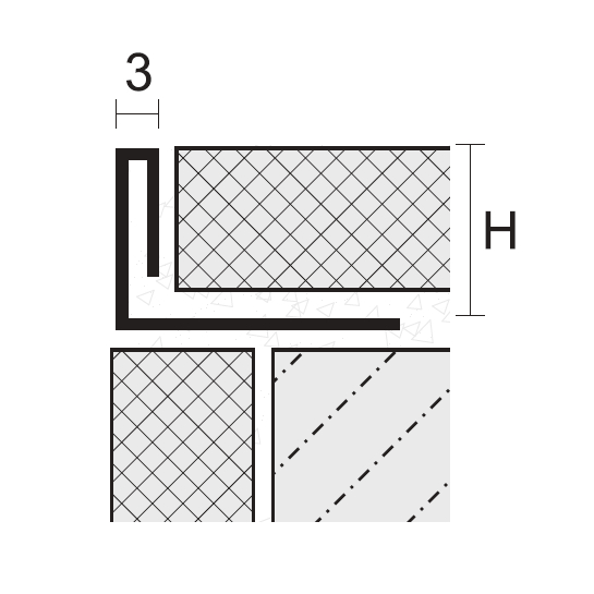 Профіль монтується у стик для покриття на клей для керамічної плитки, паркетної дошки або на інший монтажний клей.