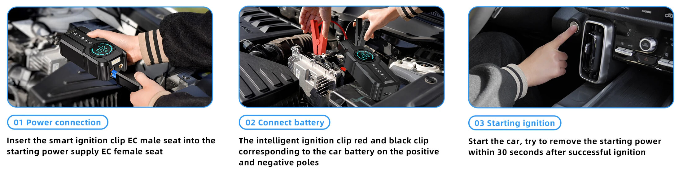 - Запуск автомобіля. У випадку розрядженого акумулятора він може використовуватися як пусковий пристрій для запуску Вашого автомобіля.