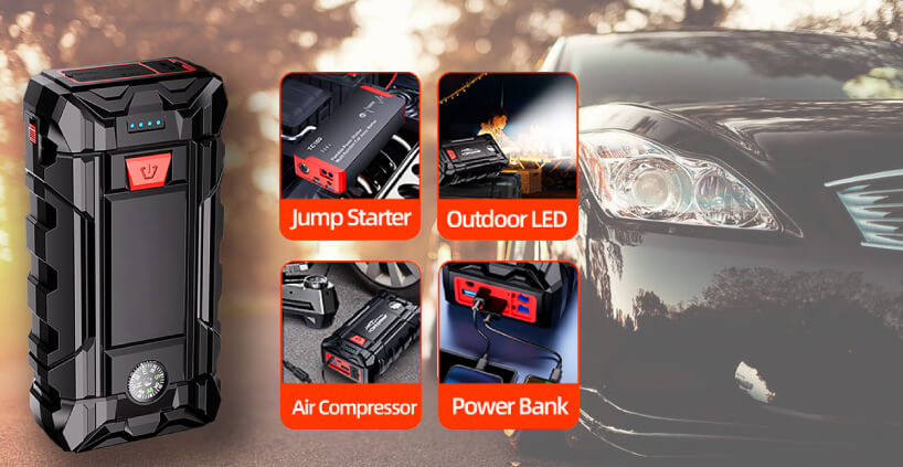 - Більше, ніж просто стартер: пристрій обладнаний яскравим світлодіодним ліхтариком із 4 режимами (освітлення/спалах/SOS/попередження) для різних обставин.