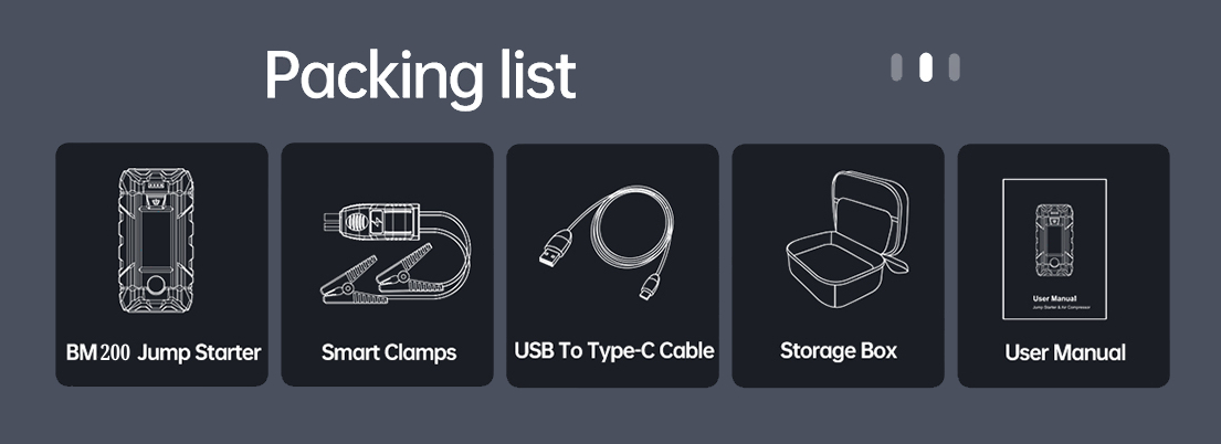 Потужний та компактний пусковий пристрій на 2000А: запустіть свій автомобіль (до 7л бензинового або 5,5л дизельного двигуна) за допомогою 2000A пікового струму та потужних затискачів за лічені секунди навіть при температурі від -20℃ до +60℃.